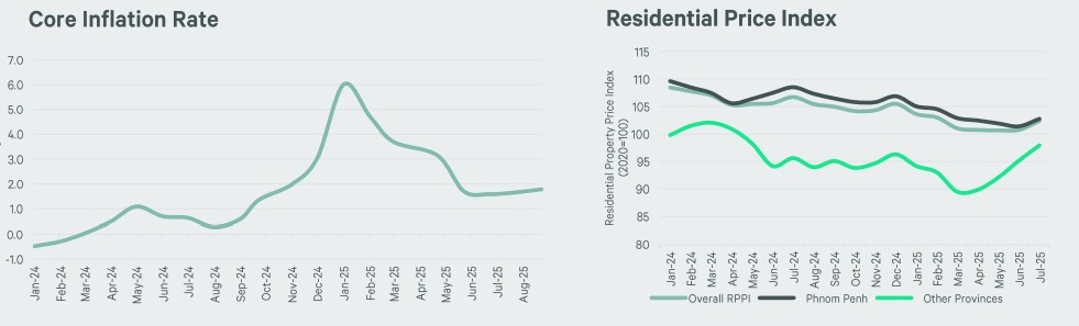 Dane Narodowego Banku Kambodży pokazują niewielki wzrost indeksu cen nieruchomości mieszkaniowych, głównie w Phnom Penh i pobliskich prowincjach. Wzrost ten, choć niewielki, odzwierciedla podskórną tendencję ożywienia na rynku nieruchomości. Analitycy ostrzegają jednak, że zbiór danych obejmuje jedynie transakcje finansowane przez banki – pomijając dużą ilość zakupów gotówkowych i finansowanych przez deweloperów, które dominują w kambodżańskim sektorze nieruchomości. Mimo to, wzrost ten dodaje nutę optymizmu po przedłużającym się okresie stagnacji.